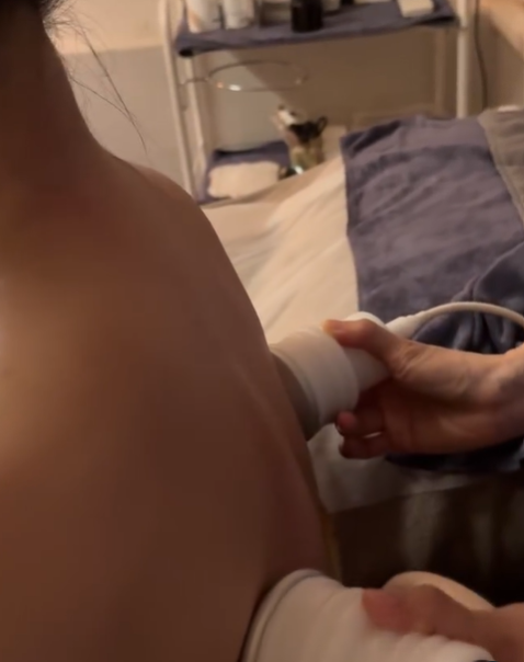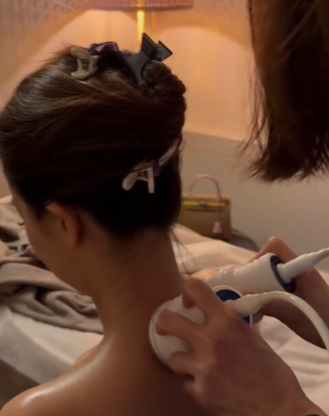 Angelina experienced our unique German-engineered detox treatment, which uses gentle suction and rhythmic compression to release deep-seated muscle tension and flush out toxins. This machine works magic—breaking down lactic acid, releasing tight fascia, and stimulating lymphatic drainage, all without any pain or discomfort.