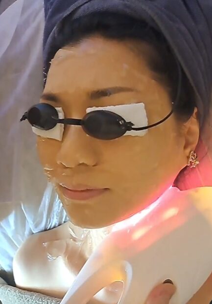 Next came the Near Infrared (NIR) therapy, which deeply stimulated collagen production. Tina described the warmth as “soothing,” and felt her skin firming even as the session continued.